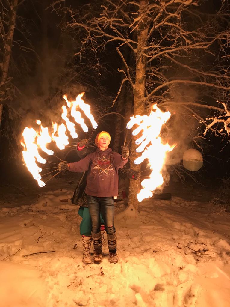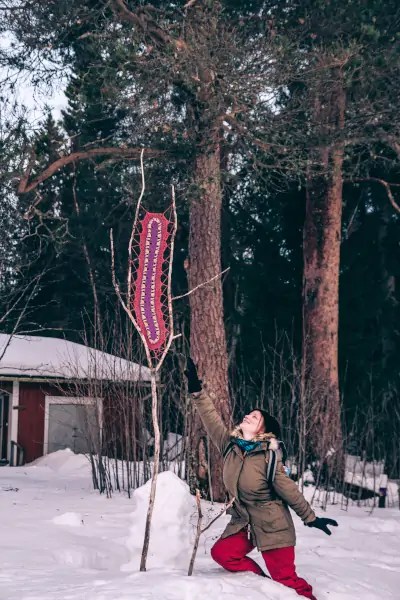 Tällä hetkellä tekstiili- ja ympäristötaide ovat minulle tärkeimpiä taiteen muotoja. Virkkaan neulegraffiteja, jotka ripustan esille luontoon, kotiin tai kaupunkiympäristöön. Teen myös vuodenaikaan sopivaa ympäristötaidetta luonnon materiaaleista.