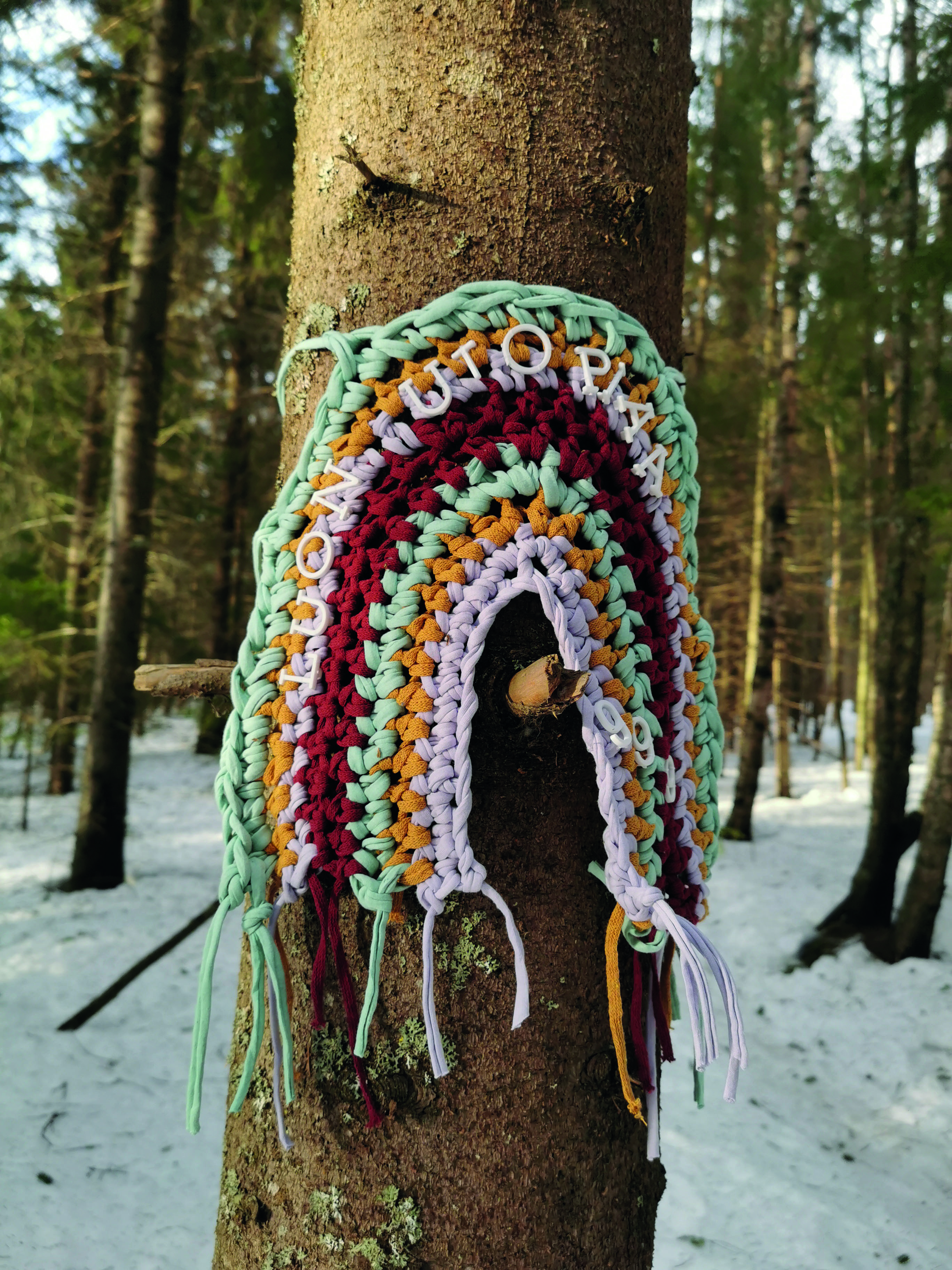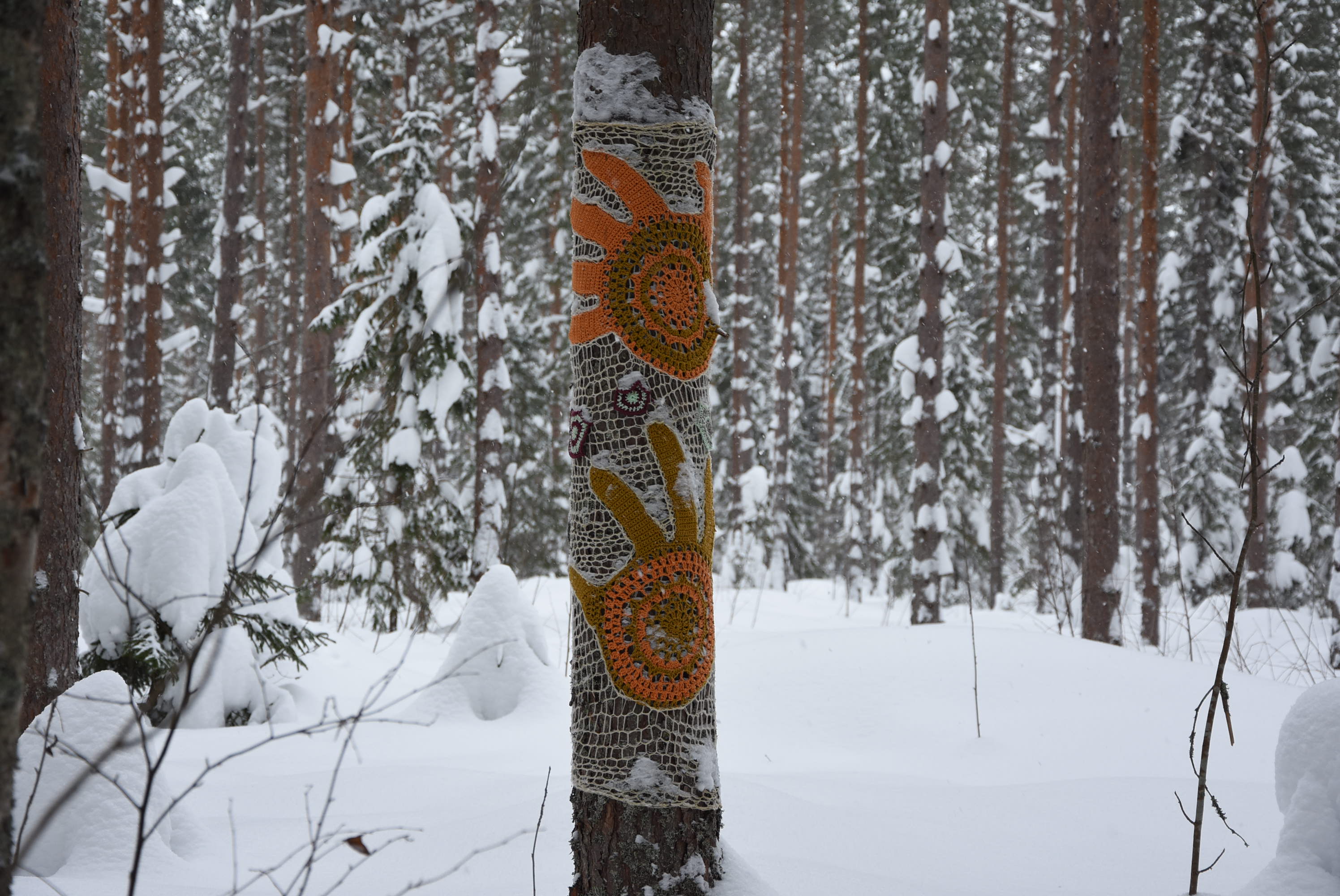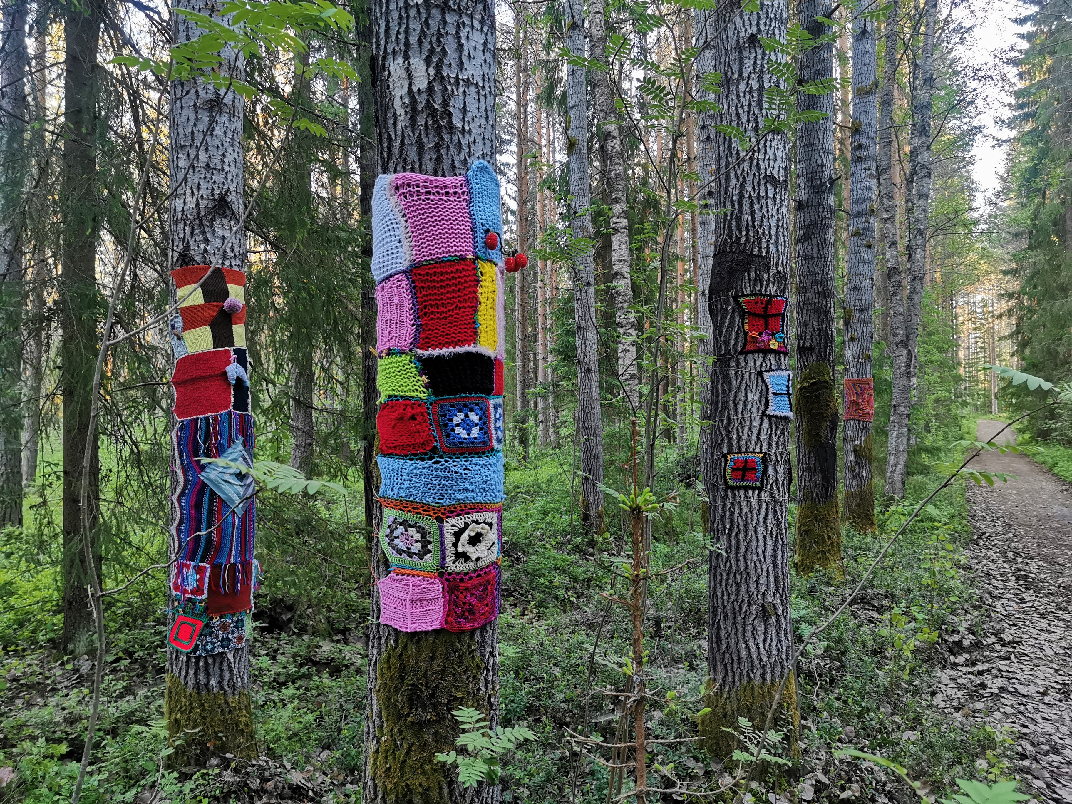 Before summer I took part in three group exhibitions where first Yarn on a Plate – art works were presented. During the summer I created again Warjakka Art Path in co-operation with TaikaBox ry. I also studied mentoring an artistic peer group (Soveltavan taiteen vertaisryhmänohjaaja), held few yarnbombing workshops and a two day environmental art course for Mieli ry in Varjakansaari.